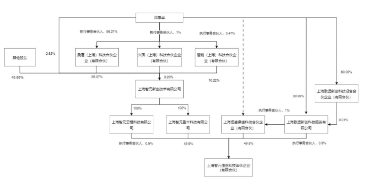 (3)上海智元云程科技有限公司(以下简称“智元云程”,智元机器人全资子公司)和致远新创(邓泰华持股99.99%)均作为执行事务合伙人,并分别出资0.5%。